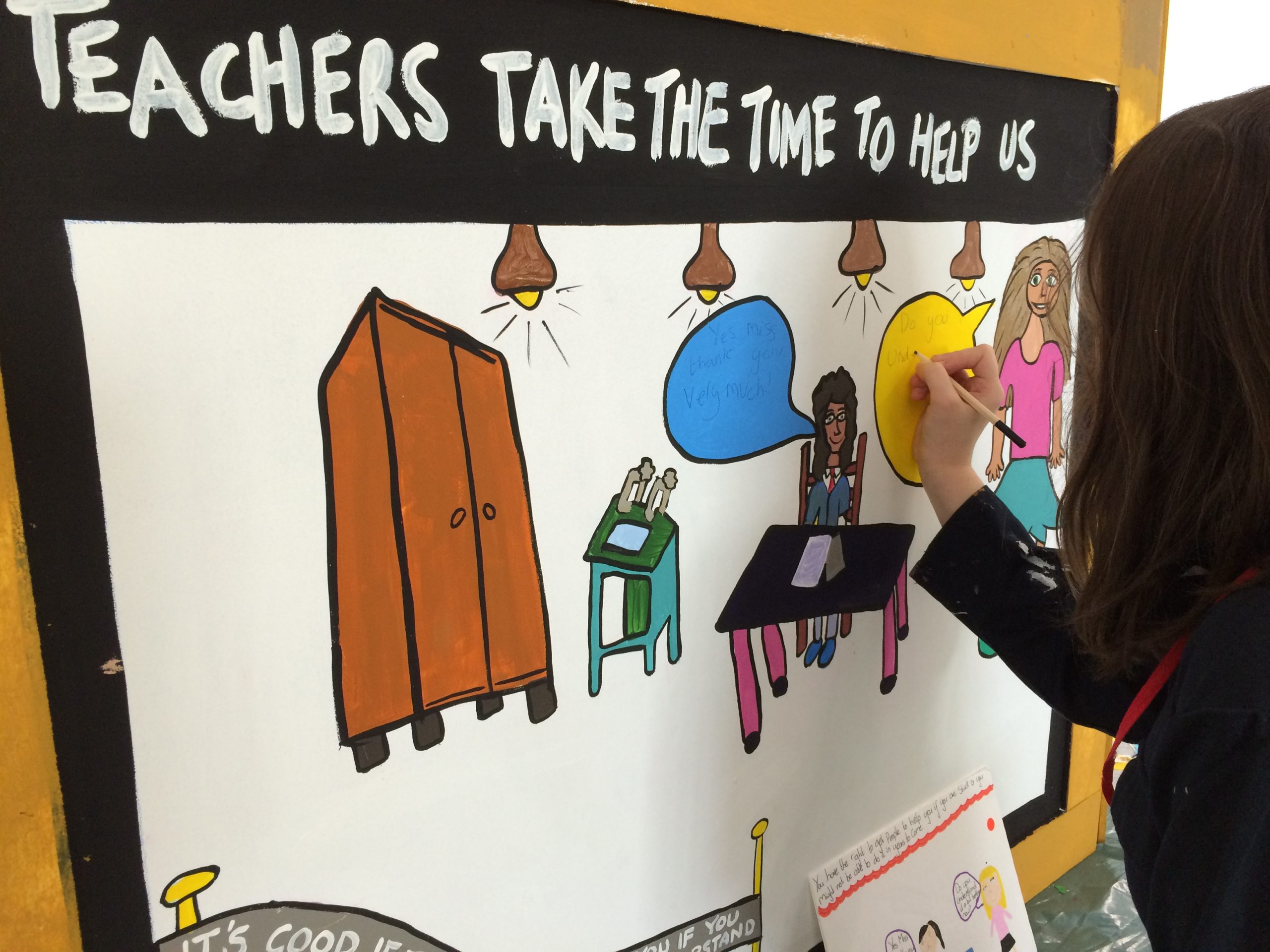 This consultation fed into regional and national discussions about how Scotland can be a fairer and more equal place to live. The children’s 24 foot mural helped Fife Council better understand the needs of children. The mural process also supported children to articulate to Government their needs in relation to: “Creating a fairer Scotland – What Matters to You?“